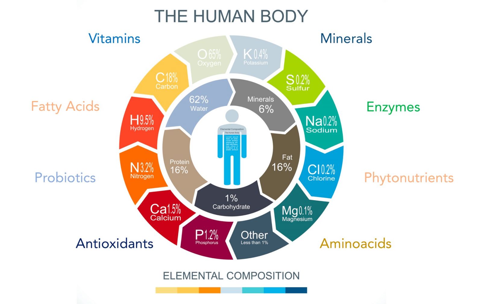 Το ανθρώπινο σώμα  για να λειτουργήσει φυσιολογικά χρειάζεται σε ιδανική αναλογία: