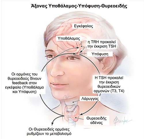 έρχονται από την υπόφυση μέσω της TSH (Thyroid Stimulating Hormone). Όταν ο οργανισμός χρειάζεται μεγαλύτερη ποσότητα από τις θυρεοειδικές ορμόνες, αυξάνεται η έκκριση της TSH.