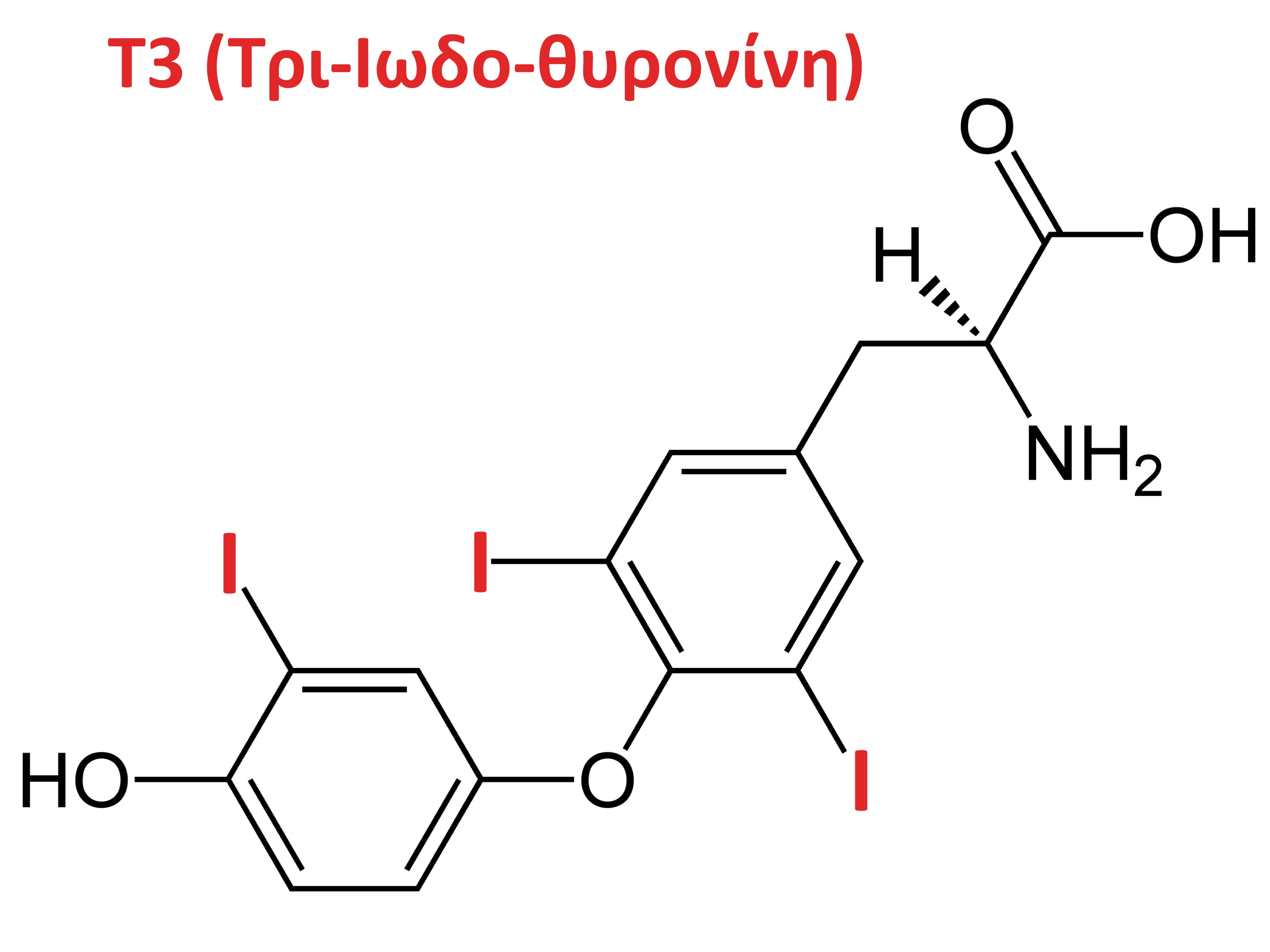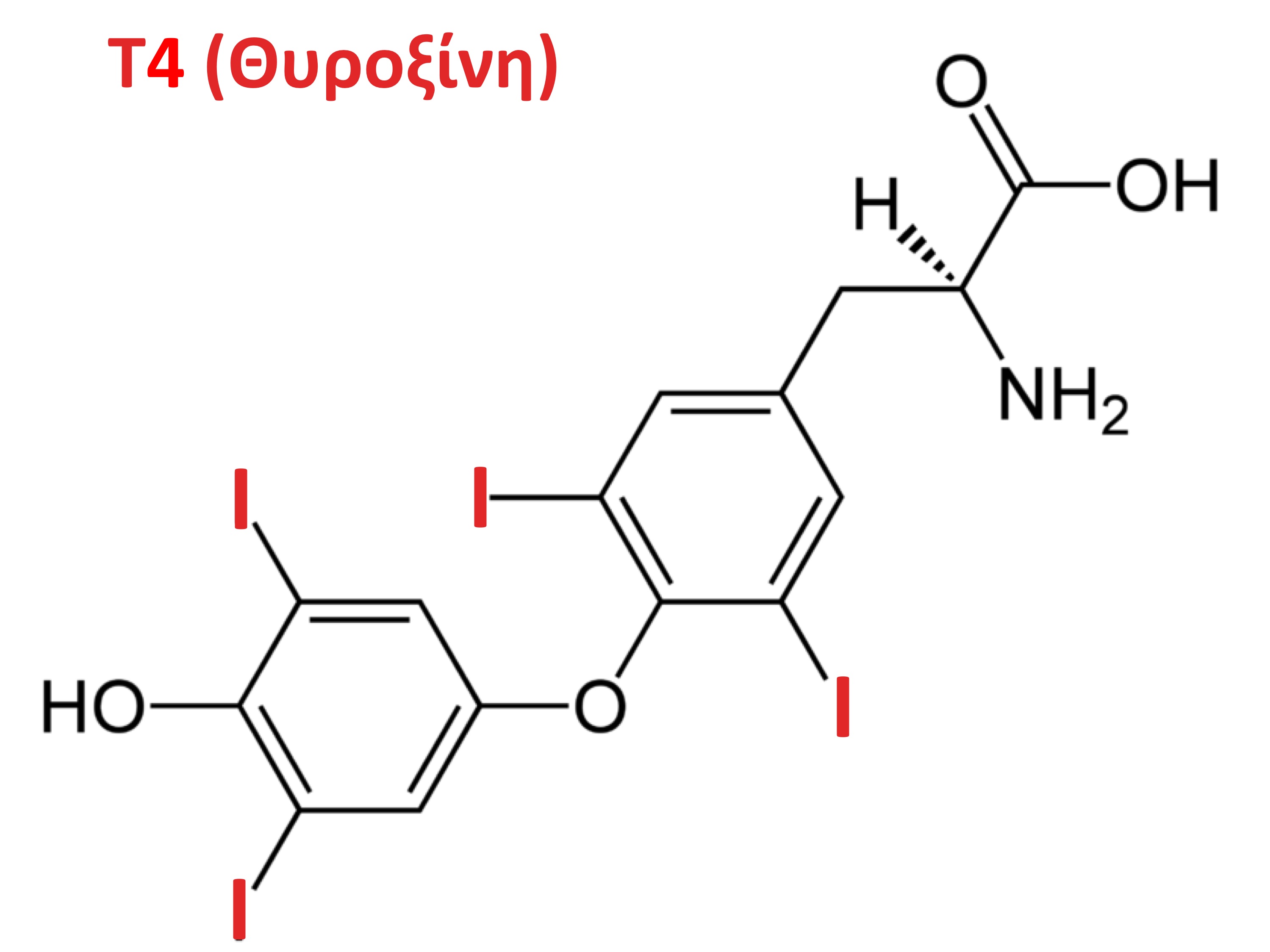 οι αριθμοί 3 και 4 αναφέρονται στο πόσα άτομα ιωδίου περιέχονται στην κάθε ορμόνη (βλ. σχήμα).